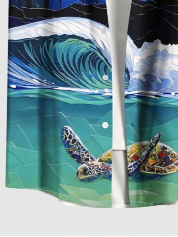 Short Sleeves Shirts > Plus Size Turtle Sea Wave Coconut Tree Moon Ombre Galaxy Print Hawaii Sea Creatures Shirt For Men