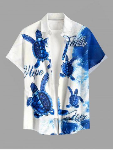 Short Sleeves Shirts > Plus Size Turtle Sea Waves Print Hawaii Sea Creatures Button Pocket Shirt For Men