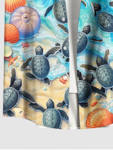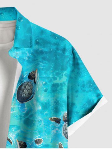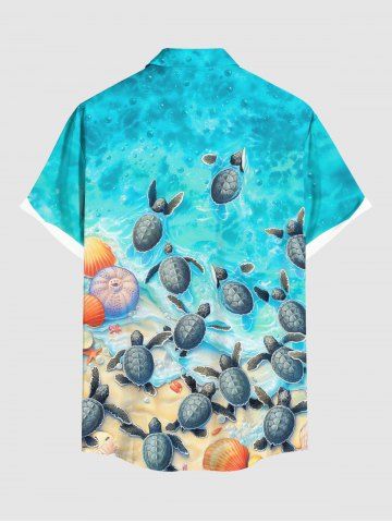 Plus Size Turtle Shell Ombre Sea Beach Print Hawaii Sea Creatures Button Pocket Shirt For Men - Blue - 3xl