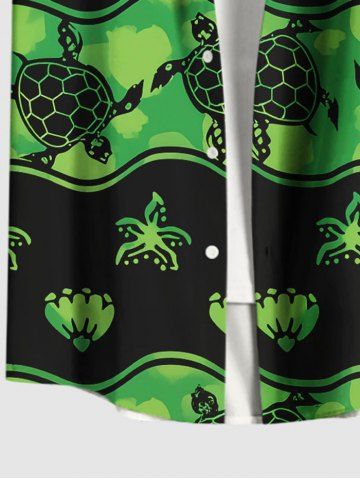 Plus Size Turtle Starfish Shell Colorblock Print Buttons Pocket Hawaii Shirt For Men - Green - 4xl