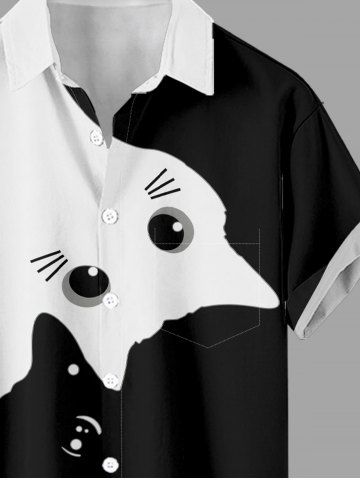 Short Sleeves Shirts > Plus Size Two Tone Cat Print Button Pocket Shirt For Men