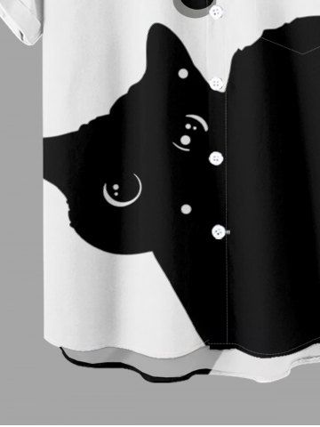 Plus Size Two Tone Cat Print Button Pocket Shirt For Men - White - 2xl