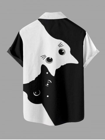Short Sleeves Shirts > Plus Size Two Tone Cat Print Button Pocket Shirt For Men