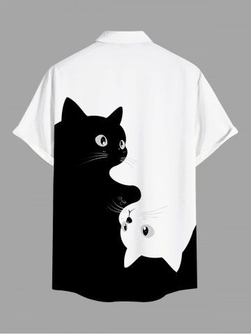 Plus Size Two Tone Cats Print Buttons Pocket Hawaii Shirt For Men - White - S