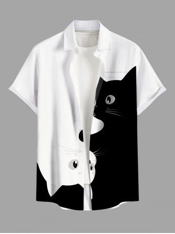 Plus Size Two Tone Cats Print Buttons Pocket Hawaii Shirt For Men - White - Xl