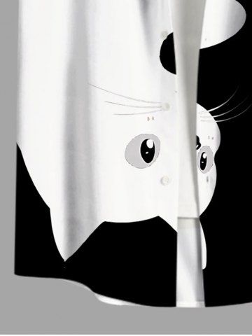 Plus Size Two Tone Cats Print Buttons Pocket Hawaii Shirt For Men - White - 6xl