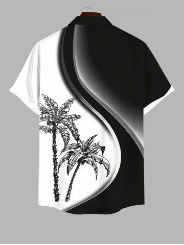 Short Sleeves Shirts > Plus Size Two Tone Coconut Tree Highway Colorblock Print Buttons Pocket Hawaii Shirt For Men