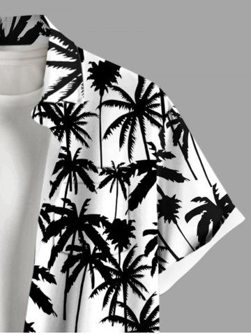 Plus Size Two Tone Coconut Tree Print Buttons Pocket Hawaii Shirt For Men - Black - 6xl