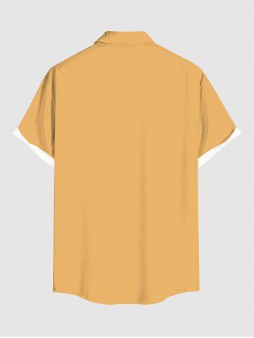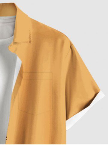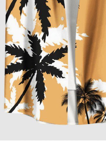 Plus Size Two Tone Coconut Tree Print Hawaii Button Pocket Shirt For Men - Deep Yellow - S