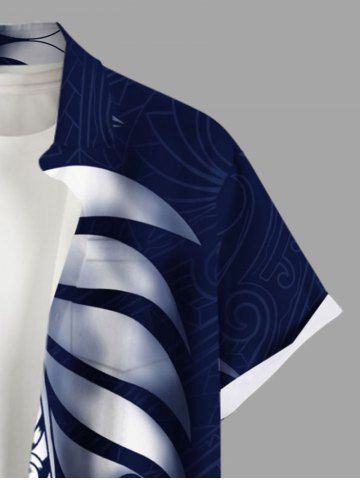 Plus Size Two Tone Contrast Colorblock Tropical Leaf Print Buttons Pocket Hawaii Shirt For Men - White - Xl
