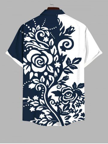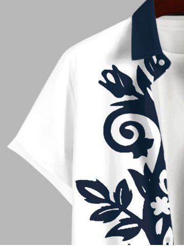 Plus Size Two Tone Curve Flowers Leaf Print Buttons Pocket Hawaii Shirt For Men - Multi-a - 2xl