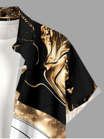 Plus Size Two Tone Curve Print Hawaii Button Pocket Shirt For Men - Black - Xl