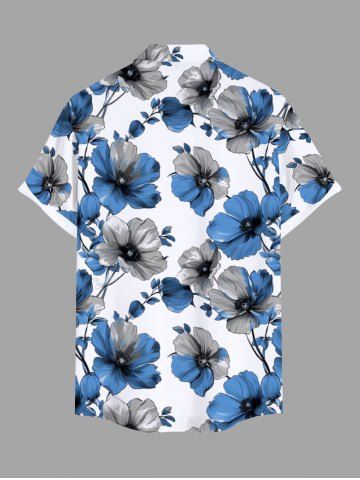 Plus Size Two Tone Flower Branch Print Hawaii Button Pocket Shirt For Men - Blue - 2xl