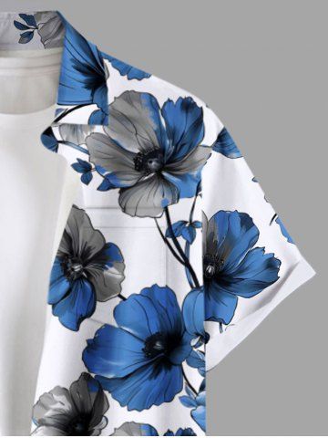 Plus Size Two Tone Flower Branch Print Hawaii Button Pocket Shirt For Men - Blue - 5xl
