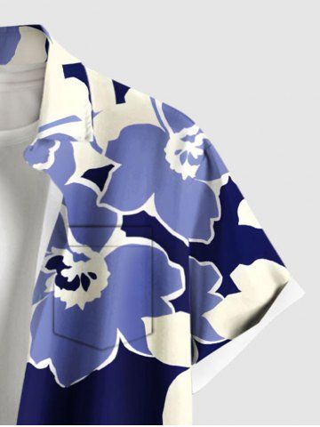 Short Sleeves Shirts > Plus Size Two Tone Flower Print Hawaii Button Pocket Shirt For Men