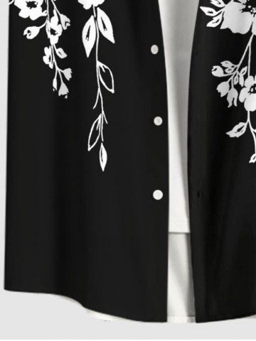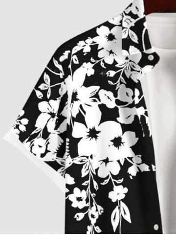 Plus Size Two Tone Flowers Leaf Print Buttons Pocket Hawaii Shirt For Men - Black - 3xl
