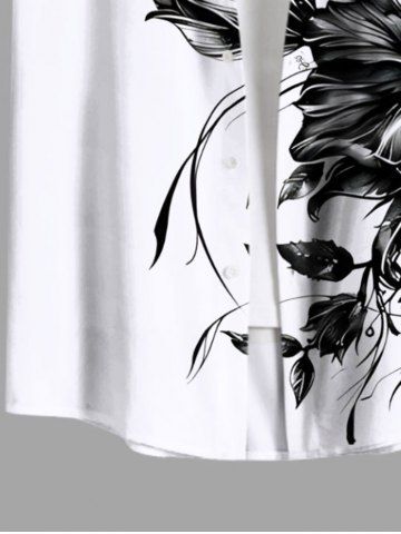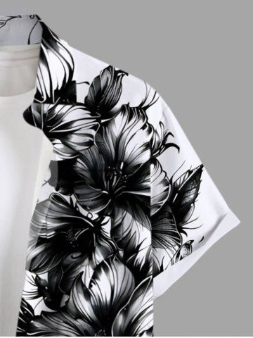 Plus Size Two Tone Hibiscus Flower Leaf Print Buttons Pocket Hawaii Shirt For Men - White - 2xl
