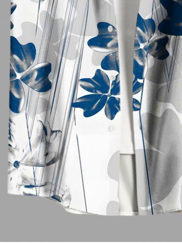 Plus Size Two Tone Leaf Print Hawaii Button Pocket Shirt For Men - White - L