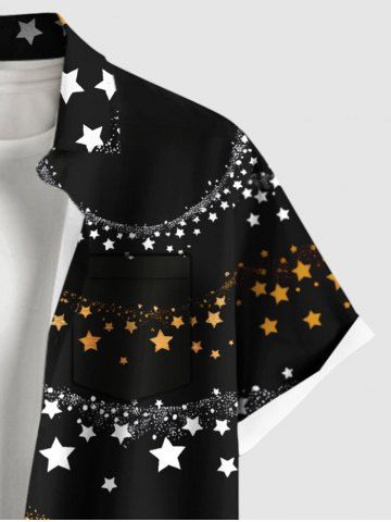 Plus Size Two Tone Stars Galaxy Print Hawaii Button Pocket Shirt For Men - Black - M