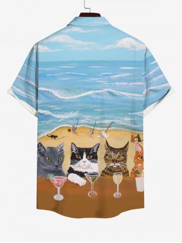 Short Sleeves Shirts > Hawaii Plus Size Vacation Style Cat Goblet Sea Beach Print Pocket Buttons Shirt For Men