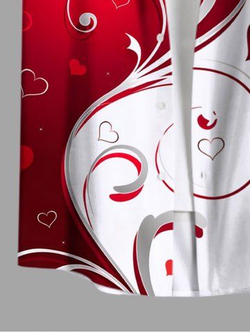 Plus Size Valentine's Day Heart Curve Two Tone Colorblock Print Buttons Pocket Shirt For Men - Red - 4xl