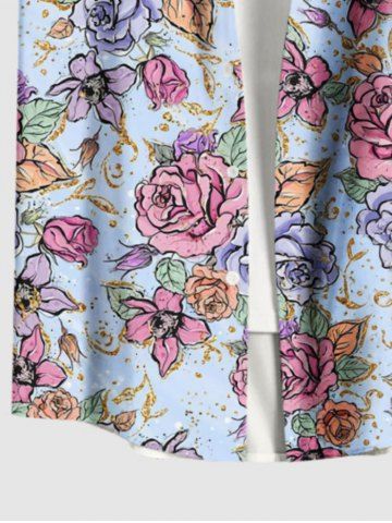 Plus Size Valentine's Day Rose Flower Print Buttons Pocket Shirt For Men - Powder Blue - Xl