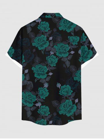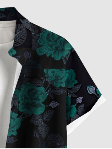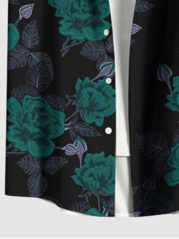 Plus Size Valentine's Day Rose Flowers Leaf Print Buttons Pocket Shirt For Men - Black - 5xl