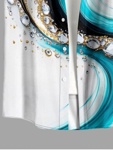 Plus Size Water Ripple Curve Diamond Print Hawaii Button Pocket Shirt For Men - White - M