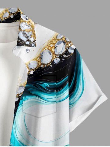 Plus Size Water Ripple Curve Diamond Print Hawaii Button Pocket Shirt For Men - White - 4xl