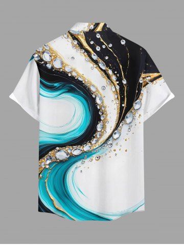 Plus Size Water Ripple Curve Diamond Print Hawaii Button Pocket Shirt For Men - White - 5xl