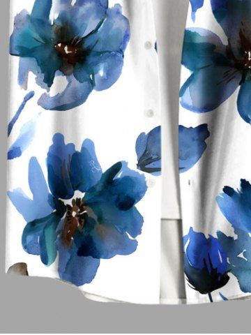 Plus Size Watercolor Flowers Print Buttons Pocket Hawaii Shirt For Men - Blue - Xl