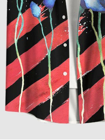 Plus Size Watercolor Ombre Floral Striped Painting Patriotic American Flag Print Button Pocket Shirt For Men - Black - 4xl