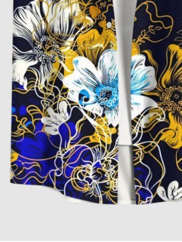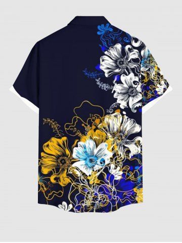 Plus Size Watercolor Painting Flower Print Button Pocket Shirt For Men - Black - 4xl