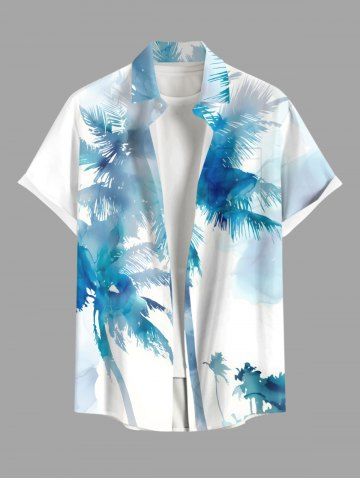 Short Sleeves Shirts > Plus Size Watercolor Tie Dye Coconut Tree Print Hawaii Button Pocket Shirt For Men