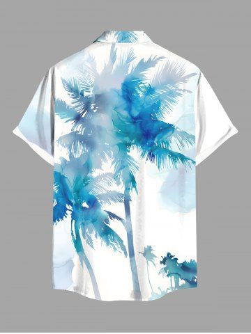 Short Sleeves Shirts > Plus Size Watercolor Tie Dye Coconut Tree Print Hawaii Button Pocket Shirt For Men