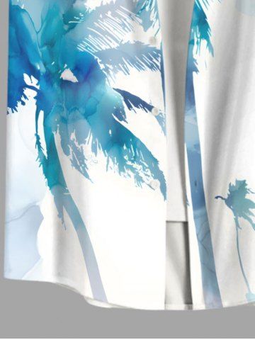 Plus Size Watercolor Tie Dye Coconut Tree Print Hawaii Button Pocket Shirt For Men - Light Blue - 5xl