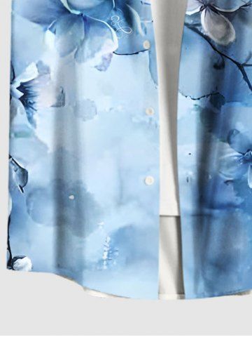 Plus Size Watercolor Tie Dye Ombre Flower Branch Print Hawaii Buttons Pocket Shirt For Men - Blue - 5xl