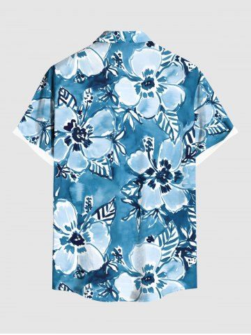 Plus Size Watercolor Tropical Flowers Leaf Print Buttons Pocket Hawaii Shirt For Men - Blue - 6xl