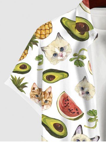 Plus Size Watermelon Pineapple Cat Avocado Print Hawaii Button Pocket Shirt For Men - White - 4xl