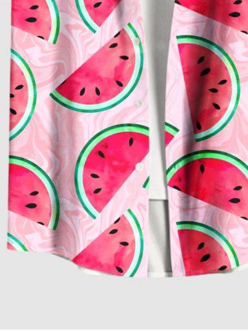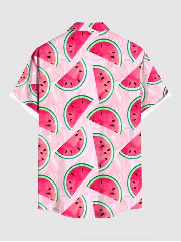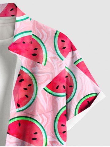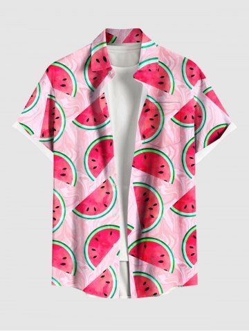Plus Size Watermelon Print Buttons Pocket Hawaii Shirt For Men - Light Pink - 2xl
