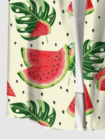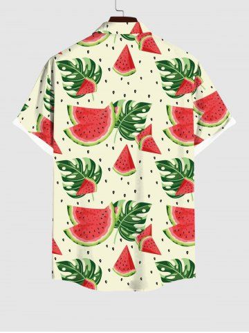 Plus Size Watermelon Tropical Palm Leaf Print Buttons Pocket Hawaii Shirt For Men - Multi-a - S