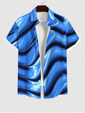 Plus Size Wave Gradient Abstract Art 3D Print Buttons Pocket Hawaii Shirt For Men - Blue - M