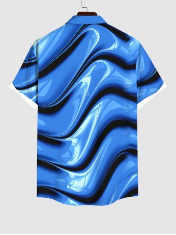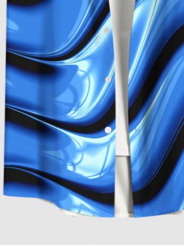 Plus Size Wave Gradient Abstract Art 3D Print Buttons Pocket Hawaii Shirt For Men - Blue - Xl