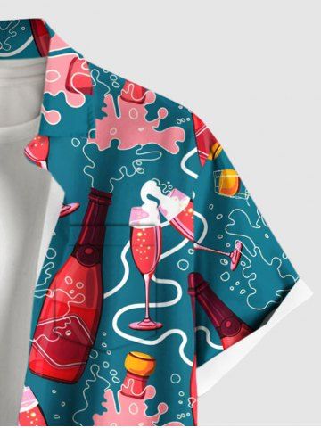 Short Sleeves Shirts > Plus Size Wine Bottle Sea Print Hawaii Button Pocket Shirt For Men