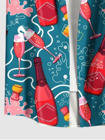 Plus Size Wine Bottle Sea Print Hawaii Button Pocket Shirt For Men - Green - 4xl