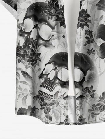 Plus Size X-ray Skull Flowers Leaf Print Buttons Pocket Hawaii Shirt For Men - Light Gray - S