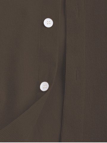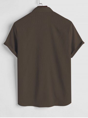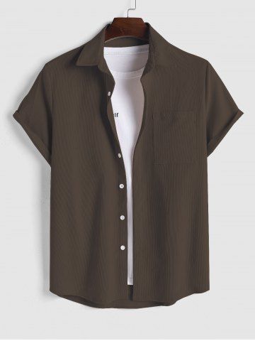 Solid Color Corduroy Short Sleeves Shirt - Deep Coffee - Xxl