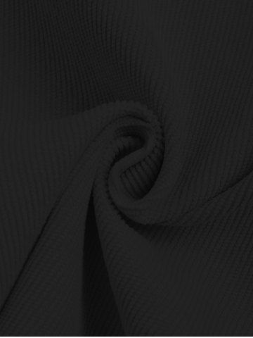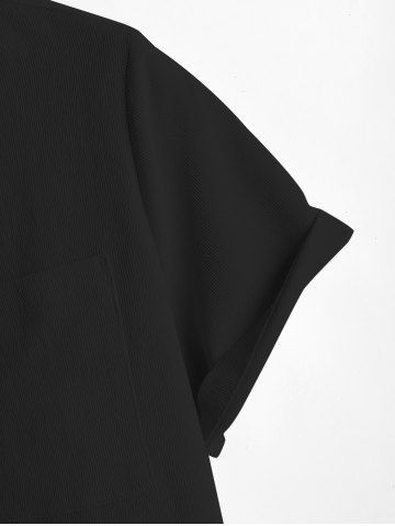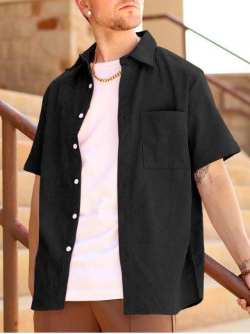 Solid Color Corduroy Short Sleeves Shirt - Black - S