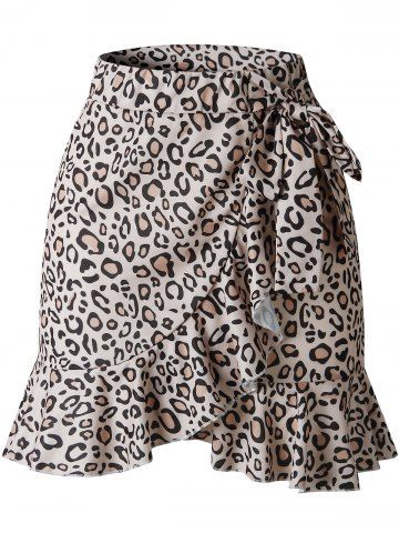 High Waist Flounced Bowknot Tie Mini Skirt - Khaki - Xl