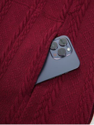 Plus Size Grommets Lace-up Lace Trim Cable Knit Pocket Hooded Sweater Dress - Deep Red - 1x | Us 14-16